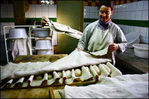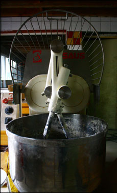 Nous ne pétrissons plus à la main et l'Ostéopathe ne nous voit plus beaucoup ! ! Cependant nous nous sommes équipés d'un pétrin style « artoflex » qui reproduit au mieux le mouvement des bras et avec sa vitesse de pétrissage lente la pâte ne chauffe pas...
